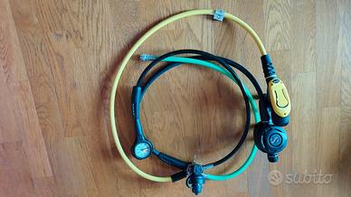 Vendo attrezzatura come in foto composta da erogatore scubapro mk21 + erogatore mares di emergenza. Attrezzatura utilizzata solo 1 volta.