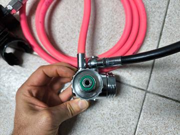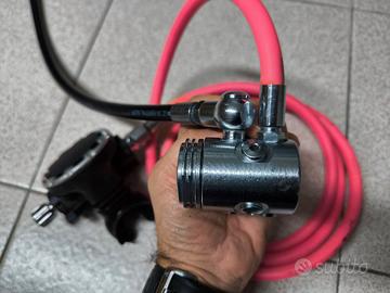 Due primi stadi F40 attacco DIN e due secondi stadi FX1, manometro 300bar, frusta lunga fucsia 200 cm, e frusta corta per gav da 50cm montata su snodo a 90°. Tutto perfettamente funzionante.