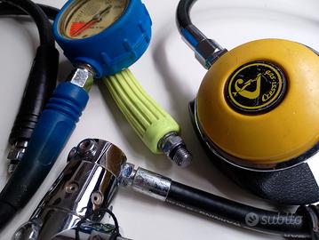 CRESSI SUB erogatore underwater vintage raro. Erogatori Mares MR 12 e MR 22 Abyss manometro.