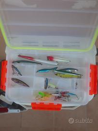vendo esche e valigette impermeabili, tutto usato per ben 5/8 volte, vendo per mancanza di tempo .