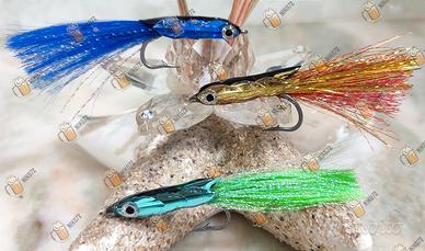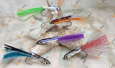 Come da titolo vendo esche artificiali artigianali fatte interamente a mano. Amo acciaio inox Youvella 2/0. Ideali per la pesca a: tonnetti, lampughe, spigole, carangidi, ecc...