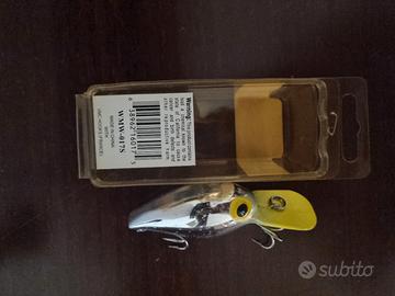Vendo esche artificiali tipo Crankbait, ottima per la pesca a spinning di predatori come black bass, lucci e persici reali. L'esca presenta una finitura cromata altamente riflettente con paletta gialla o rossa ad alta visibilità.