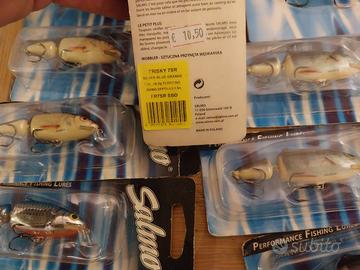 Vendo artificiali Salmo nuovi, ideali per la pesca alla Spigola, Bass e predatori in generale. 4 euro cadauno. Preferibile consegna a mano provincia Grosseto, Siena. Spese di spedizione a carico dell'acquirente. Foto dettagliate con foto dell'etichetta per ogni tipologia. Cedo tutto il lotto a 115€
