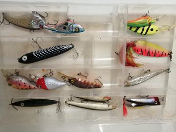 Set di esche artificiali da pesca. 7 scatole in totale. Per le restanti foto, se interessati basta chiedere. Borsa inclusa.