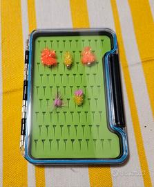 esche tutte su amo del 10; 3 affondanti e 2 galleggianti.