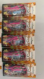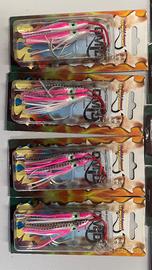 Vendo esche artificiali per pesca in mare tipo octopus/skirt, nuove e mai usate, ancora nella confezione originale.