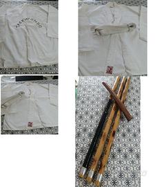 e un kimono (solo la parte di sopra con cintura bianca) da karate (la scritta del taekwondo dietro fu cucita ma volendo si può togliere)