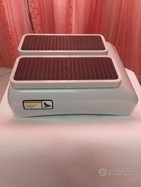 Pedana vibrante e movibile a due velocità per esercitare passivamente le gambe da seduti.