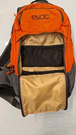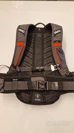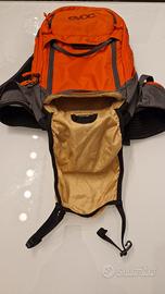 Zaino Evov FR lite race 10 in ottime condizioni, paraschiena integrato removibile, supporto per casco aperto o integrale, tasca per barretta sulla spalletta e doppia chiusura.