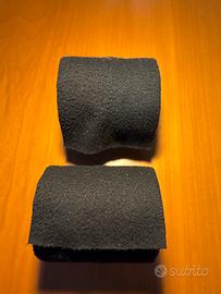 Fasce da lavoro in pile Pegaso, utilizzate per una decina di mesi una volta a settimana. Lavate periodicamente non presentano strappi o bruciature. Tessuto ancora morbido, colore nero.