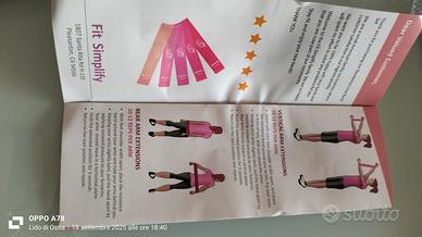 kit da 5 fasce elastiche di varie intensità, nuove, con delizioso astuccio rosa e guida per usarle. ottimo come regalo
