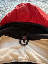 Felpa con cappuccio, spalle e petto in primaloft, maniche e schiena in licra, molto calda dove serve e traspirante.