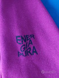 Felpa tecnica da sci viola taglia S. interno leggermente felpato. logo sulla spalla. Condizioni ottime a parte il cordino sinistro un po rovinato e una macchiolina bianca poco visibile sull'interno manica vicino al polsino.