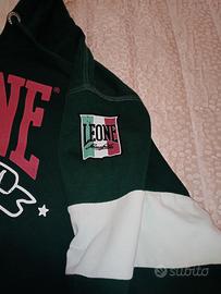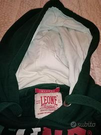 Felpa sportiva rara LEONE boxe verde bottiglia XL sport ultras pugilato cappuccio Italia.