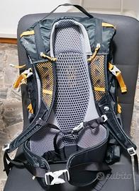 Zaino Ferrino Zephyr 17+3 NUOVO MAI USATO vendo. Caratteristiche Tecniche: Tessuti: 100% recycled Diamond HD | Rain Cover e fodere interne 100% riciclati Dorso: Dorso con sistema "Dry Net System": il bastino in acciaio flessibile, permette una perfetta distribuzione del carico e garantisce un elevato livello di aerazione tensionando la rete che separa lo zaino dalla schiena dell'utilizzatore. | Spallacci e cintura a vita con "Hollow Back System": una traspirazione eccellente grazie all'abbinamento di imbottiture con canali di aerazione e tessuto reticolare super traspirante. Tasche: Laterali in rete | Di sicurezza in rete con portachiavi | Frontale | Su fascia a vita | Interna sul dorso Accessori: Copri zaino | Estensione del volume +3 litri | Porta bastoncini | Compatibile col sistema di idratazione H2 Bag | Asole porta casco | Compatibile con "Helmet Holder" | Loghi rifrangenti | Passante posteriore per la luce di sicurezza | Nastri di compressione laterale | Cinturino pettorale con fischietto d'emergenza