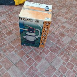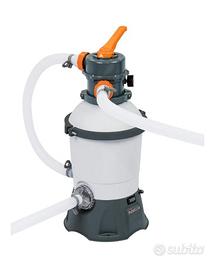Contenuto della confezione: filtro a sabbia Bestway Flowclear, attacco a valvole filettate da 3,8 cm, con adattatore per tubi da 32 mm e dosatore di sostanze chimiche, per sabbia per filtro o sfere filtranti “Poliysphere”.