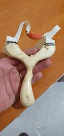 Fionda in legno di carrubo intagliata a mano.