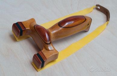 Fionda da tiro, artigianale, realizzata con legni pregiati: acero, mogano e bois de rose.