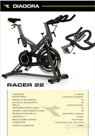 Vendo fit bike Diadora Racer 22 in ottime condizioni, perfettamente funzionante. Ideale per allenamento cardio a casa, con struttura solida e stabile. Dotata di regolazione della resistenza, sellino e manubrio regolabili per adattarsi a diverse altezze. Sistema di resistenza regolabile Display per tempo, velocità, distanza e calorie Sella regolabile in altezza e profondità Struttura robusta e silenziosa Pedali con cinturini di sicurezza La bici è sempre stata tenuta in casa e utilizzata con cura. Preferibile ritiro a mano