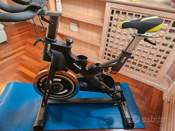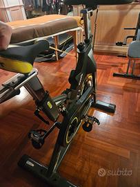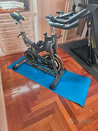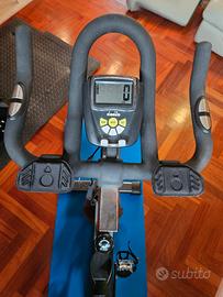 • Volano: 25 Ka. ideale per allenamenti intensi • Resistenza: Manuale a tampone, regolabile • Trasmissione: A catena Pignone: Fisso • Rilevazione Cardiaca: Sensori palmari Hand Pulse sul manubrio • Computer LCD: Visualizza tempo, velocità, distanza, calorie pulsazioni e RPM. • Regolazioni: Sella e manubrio regolabili in verticale e orizzontale, • Struttura: Pedali racing, ruote di trasporto, piedini di livellamento e porta borraccia. • Peso massimo utente: 120 kg.