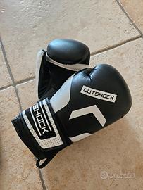 Guantoni, guanti e parastinchi per fitness box. Vendo per inutilizzo. Taglia M/L. Usati forse 5 volte. Come nuovi.