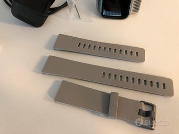 Per inutilizzo vendo Fitbit Versa 2 (Grigio sabbia/Grigio nebbia) smartwatch per benessere e forma fisica Lo smartwatch è stato sostituito in garanzia il 25 marzo 2021 (per un difetto del dispositivo precedente), è quindi pari al nuovo (è stato usato fino a giugno 2021) E' sempre stato usato con un cinturino in maglia milano (che si vede nelle foto e che fa parte dell'offerta) e quindi anche il cinturino originale è da considerarsi pari al nuovo (disponibile in doppia taglia S e L). Queste le principali funzionalità: Registrazione dell'attività dell'intera giornata Rilevamento del sonno (con monitoraggio leggero, profondo e REM) Calorie bruciate durante l'attività e durante tutta la giornata Rilevamento dei piani saliti Più di 20 modalità di allenamento Sincronizzazione wireless Durata della batteria fino a 6 giorni Touch-screen a colori ad alta risoluzione Quadrante orologio personalizzabile Amazon Alexa Integrata