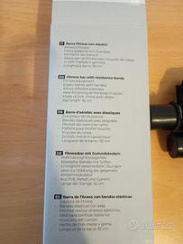 Fitness bar in due pezzi, metallo con rivestimento morbido in EVA cm 92 ed elastici per allenare tutti i muscoli. Usata pochissimo, in confezione originale completa di guida agli esercizi