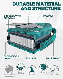 Le pinne centrali removibili assicurano velocità e manovrabilità, mentre il tappetino EVA antiscivolo garantisce comfort e sicurezza. Inclusa staffa per Go-pro , perfetta per yoga, pesca o gite in famiglia.