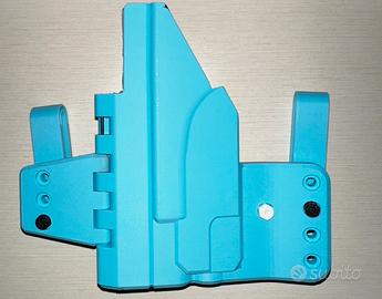 fondina glock 19 gen 5 softair/real con torcia o anche senza torcia, stampata in 3d resistentissima e totalmente regolabile insieme alla fondina spedisco anche dei dadi per regolare i ganci e scegliere se averli piu lontani o piu vicini, all’interno ho inserito del nastro isolante ma si puo benissimo toglierlo, l’ho inserito per comodità