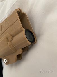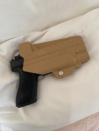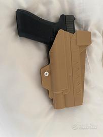 Fondina per Glock 17 con torcia X300 e ottica rds, compatibile con ottiche uguali o più piccole del Vortex Defender ST. Viti per standard Safariland QLS. con bulloni M5. In PETG, Colori a scelta.