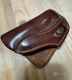 Vendo fondina per revolver tipo 38 Special canna corta 2 “ interamente in cuoio e cucito a mano. Anche se usata non ha scuciture ed è perfetta.