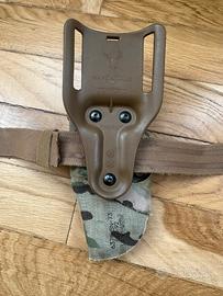 Vendo kit completo e originale Safariland 6378USN-73 in pattern Multicam, specifico per pistole serie Beretta 92 / 98 / M9. Attenzione: non è una replica economica, ma di vero materiale tattico professionale (Made in USA), rinomato per l'assoluta affidabilità. Ideale per operatori, tiratori sportivi, o appassionati di softair/militaria che cercano il top dell'equipaggiamento. Dettagli Tecnici: • Modello: 6378USN-73 (Codice BER-92). • Sistemi di Ritenzione: ALS (Automatic Locking System) + SLS (Self Locking System). Offre un livello di sicurezza altissimo mantenendo un'estrazione fluida e velocissima. • Finitura: Rivestita in tessuto Cordura Multicam originale, che protegge il polimero e azzera i riflessi. • Setup Cosciale: Viene fornita già montata su piattaforma Safariland UBL (Universal Belt Loop) Mid-Ride color Tan. • Cinturino: Include cinturino da coscia singolo con fibbia a sgancio rapido (Fastex) per una stabilità perfetta sulla gamba. Condizioni: La fondina è in ottime condizioni, usata poco e quasi pari al nuovo. Dal punto di vista meccanico e strutturale è perfetta: il polimero è integro e i sistemi di blocco ALS e SLS scattano in modo impeccabile.