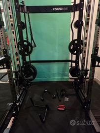 NON TRATTABILE. Comprato tutto a novembre 2025 in garanzia con scontrino. Il force G3 palestra Include una macchina Smith machine, una doppia puleggia, un rack, un landmine. Accessori inclusi: barra dritta, barra sagomata, porta bilanciere, maniglie, molle, catena, Tbar, barra dritta piccola, triangolo, corda. Pesi gommati sidea 50mm che posso dare a 200€ in più 2x20kg 4x10kg 2×5kg 2x2,5kg 2x1,25kg NON TRATTO IL PREZZO