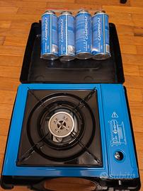Vendo per inutilizzo, fornello camping con 4 bombole di gas, mai usato!