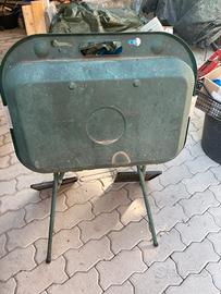 Da aperto si presenta con le sue paratie antivento. Completo di tubo e riduttore di attacco alla bombola. Si chiude tipo valigetta con gambe smontabili.