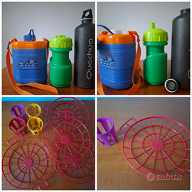 Fornello Bompani a tre fuochi usato poco(da cambiare il tubo), + bombola da 1 kg, + 3 borracce di cui una del Decathlon, + 4 portapiatti e 4 porta bicchieri, 1 pompa Decathlon manuale per materassino, +2 contenitori di soccorso,+ 1 lampada da campeggio Flama senza mantello