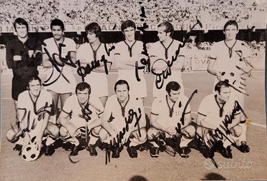 La fotografia é autografata con firme ORIGINALI dei calciatori del Cagliari Calcio e sul retro dell'allenatore Edmondo Fabbri