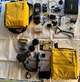 Fotocamera digitale subacquea da 10 megapixel, nota per la sua scocca resistente (profondità nominale fino a 60 m), le modalità subacquee facili da usare (come il bilanciamento del bianco automatico tramite schermo rosso) e la possibilità di scattare foto e registrare video sia sott'acqua che sulla terraferma, rendendola ideale per subacquei e amanti dello snorkeling che desiderano catturare la colorata vita marina con funzioni come lo zoom 5x e la messa a fuoco macro. Super accessoriata ed in ottime condizioni.