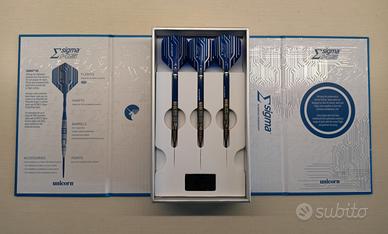 Freccette Professionali Unicorn Sigma HS 23g Steel Tip, complete di scatola originale e accessori di ricambio.