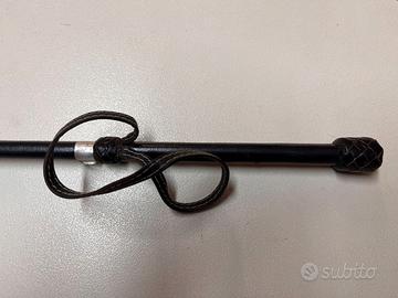Frustino per equitazione in cuoio nero. - Manico ergonomico. - Lunghezza parte flessibile 60 cm e totale cm. 72. - Laccio finale in cuoio.