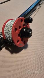 Fucile arbalete modello Australia, fusto in carbonio 110. Completo di mulinello modello race caricato con 60mt di Dynema ed asta con pinnette. Si aggiungono altre 4 aste.