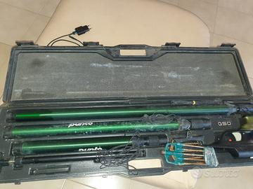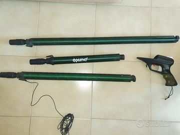 fucile subacqueo 3 in uno, manico intercambiabile per favorire la misura d'utilità... completo di valigetta portatile. Comprende sagola, aste e gonfiatore... completo per le tre misure .. prezzo 110€ per tre sten tre fucili in uno... ovviamente da rivedere perche non in uso da almeno 5 o 6 anni, ma la compressione è buona per tutti i serbatoi che non hanno perdite... richiesto anche da collezionisti vintage si vende con formula visto e piaciuto..
