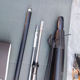 Fucile subacqueo MARES JET58 A caricamento oleopneumatico, usato una sola volta. Con due aste (una inox), due arpioni, una fiocina a 5 punte, due carichini e manuale istruzioni originale.