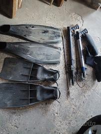 Vendo fucili da sub poco usate. pinne misura 42.43 più scarpe doppia suola scubapro nuove.