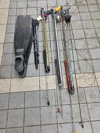 Vendo per termine utilizzo: Pinne Rondine Gara 3000 42/43 - 20€ Oleopneumatico Cressi SL 70 - 25€ Arbalete Omer MB 70 - 30€ Arbalete Cressi Apache 90 Alluminio - 40€ Arbalete Omer Carbonio 100 - 60€ Aste di ricambio e Gilet Portapiombi Omer Gomme degli arbalete sa sostituire. Eventuale spedizione da concordare