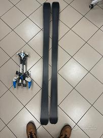 Set di sci e attacchi da sci alpinismo, originariamente utilizzati dai militari. gli attacchi sono stati smontati per essere montati su altri sci, ma verranno forniti con gli sci da rimontare. piccolo graffio sulla parte inferiore, ma per il resto in buone condizioni. sfortunatamente senza pelli di foca. gli sci sono senza adesivi ma probabilmente ~2013 G3 Soulfly 178 cm. attacchi i leggeri Diamir Eagles che possono essere utilizzati con normali scarponi da sci.