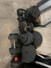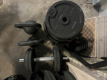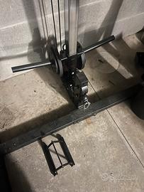 Gabbia bodybuilding POWER Puoi usare la carrucola, il triangolo e il bilanciere lat integrati per avere ancora più possibilità+ pesi vari + Panca Pesi con schienale regolabile in 5 direzioni+ tappetino pilates + Ruota per Addominali+ step + kettlebell e manubri con pesi regolabili + Bilanciere Angolato+ Bilanciere Training