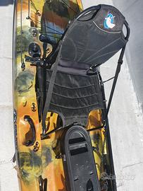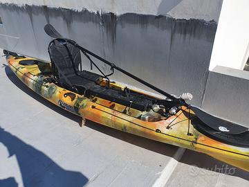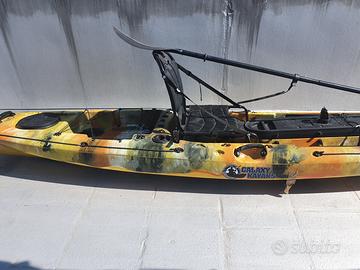 Galaxy kayak Marlin 438 usato in mare 2 volte. Dotato di 2 portacanna regolabili e 4 fissi, ha lunghezza di 438 cm e una larghezza di 73 cm, questo kayak è lungo ma stabile e raggiunge elevate velocità, con una capacità di carico massima fino a 190 kg. Ha due portelli di stiva, uno anteriore e uno posteriore con guarnizioni e dotato di sedile alto voyager. Compreso il carrellino per il trasporto.