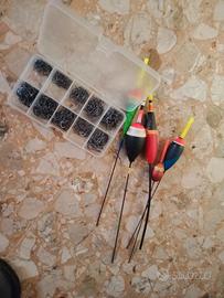 Galleggiante da mare uno di 15 grammi, un'altro di 8 grammi, un'altro di 6 grammi un'altro di 2 grammi. E 100 ami che le misure partono da 3 a 12