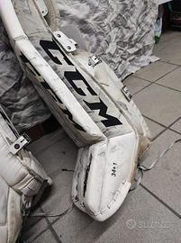 Vendo gambali per portiere hockey ghiaccio della CCM modello extreme flex 860 altezza 34 + 1 . Gambale molto leggero usato solo sul ghiaccio che garantisce massima protezione sui tiri. Normali segni legati all'utilizzo. Straps altezza caviglie rimosse per lasciare libero il pattino. Metodo di consegna da concordare.